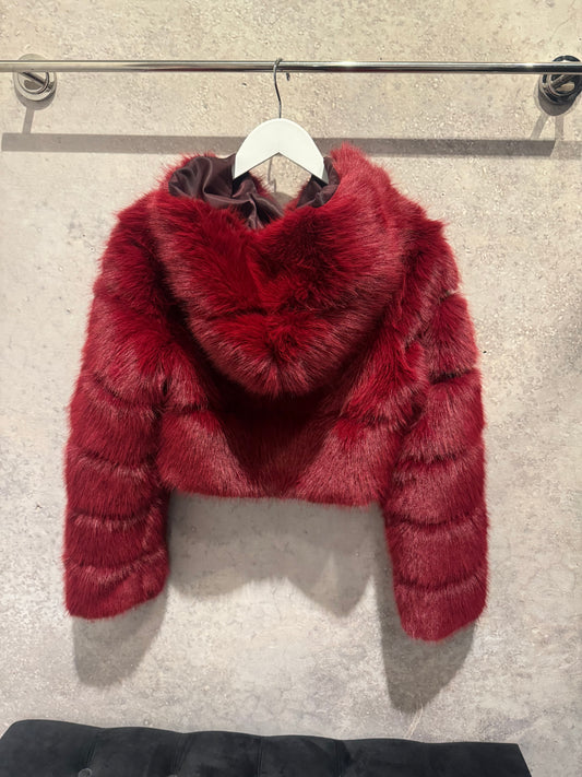 8586: Burgundy Cropped Fur Jacket