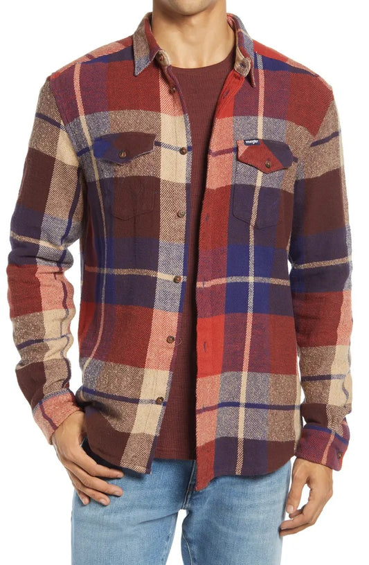 WRANGLER: PLAID FLANNEL BUTTON UP SHIRT