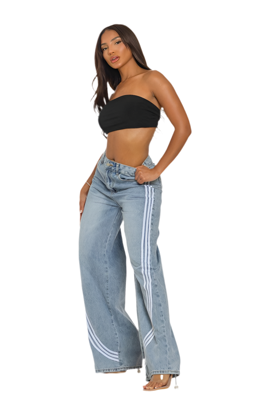 8586: LIGHTS WASH DENIM TRACK PANTS