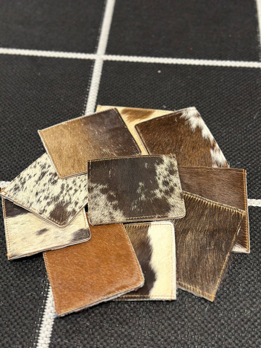 8586: MULTI BROWN COWHIDE FUR CARD HOLDER