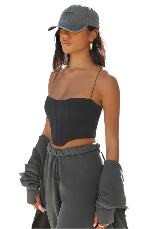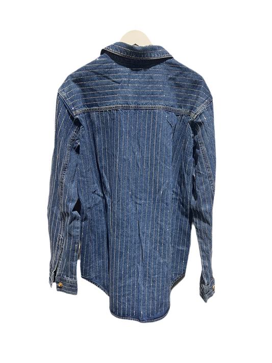8586: OFF THE SHOULDER CROP BUTTON UP SHIRT
