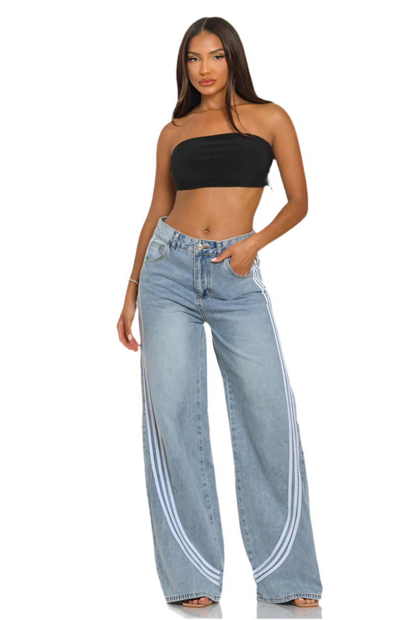 8586: LIGHTS WASH DENIM TRACK PANTS