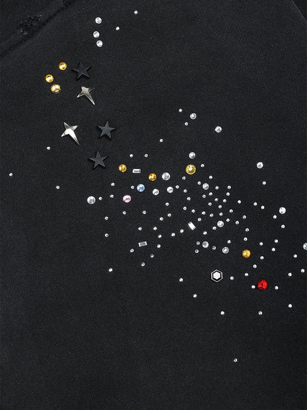 This cropped hoodie features sparkling rhinestone details that catch the light with every move, adding instant charm and making your look stand out. The dazzling accents break up the monotony of solid black, giving it a refined, eye-catching vibe. The short cut elevates the waistline, effortlessly elongating your legs for a flattering silhouette.