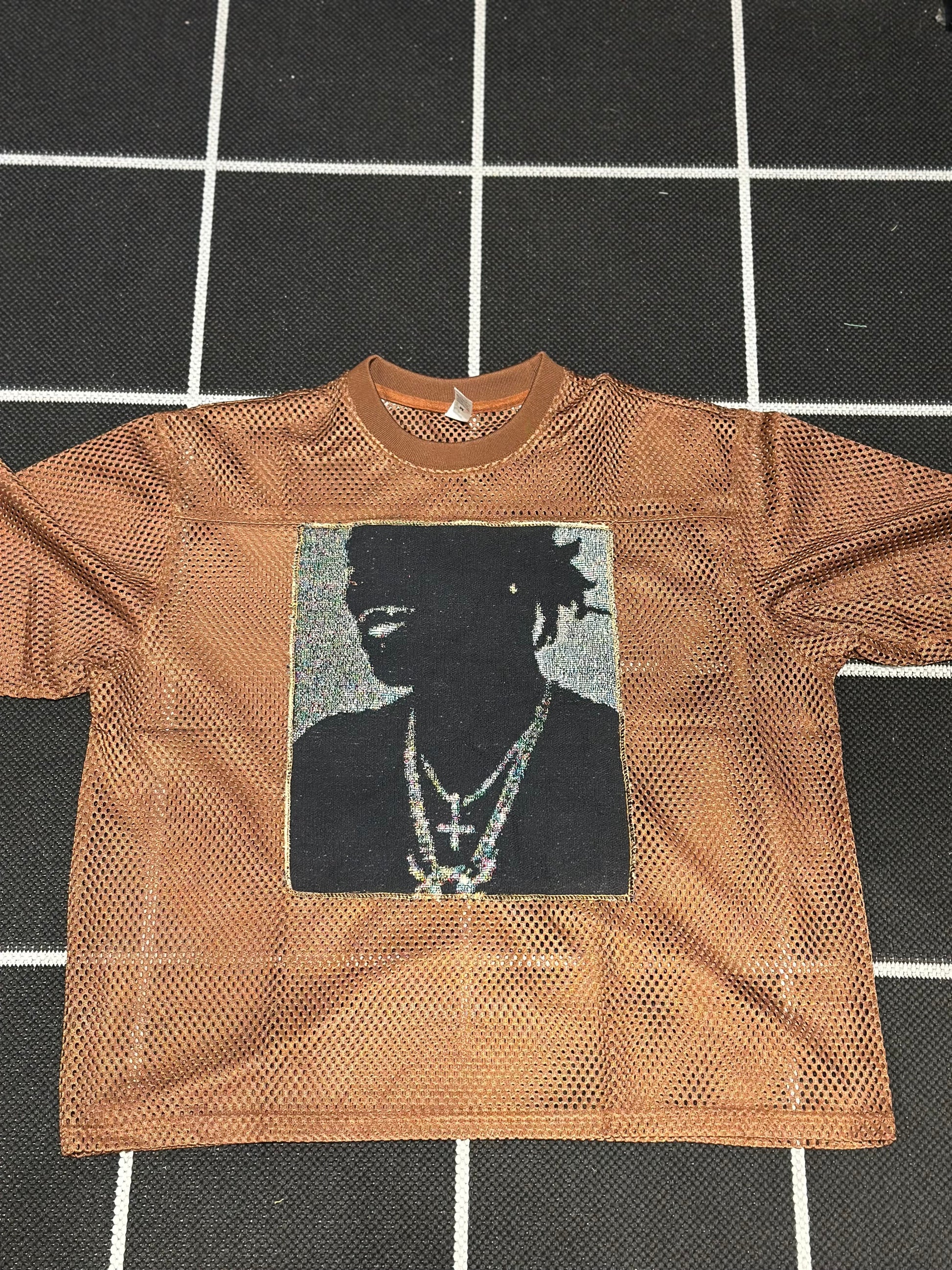 ANGEL GENTLE: YOUNG THUG TAPESTRY JERSEY MESH TOP