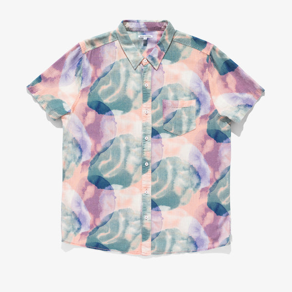 DETAILS: Standard collar, All-over print shirt, Chest pocket, Curved hem, Recycled polyester woven labels.