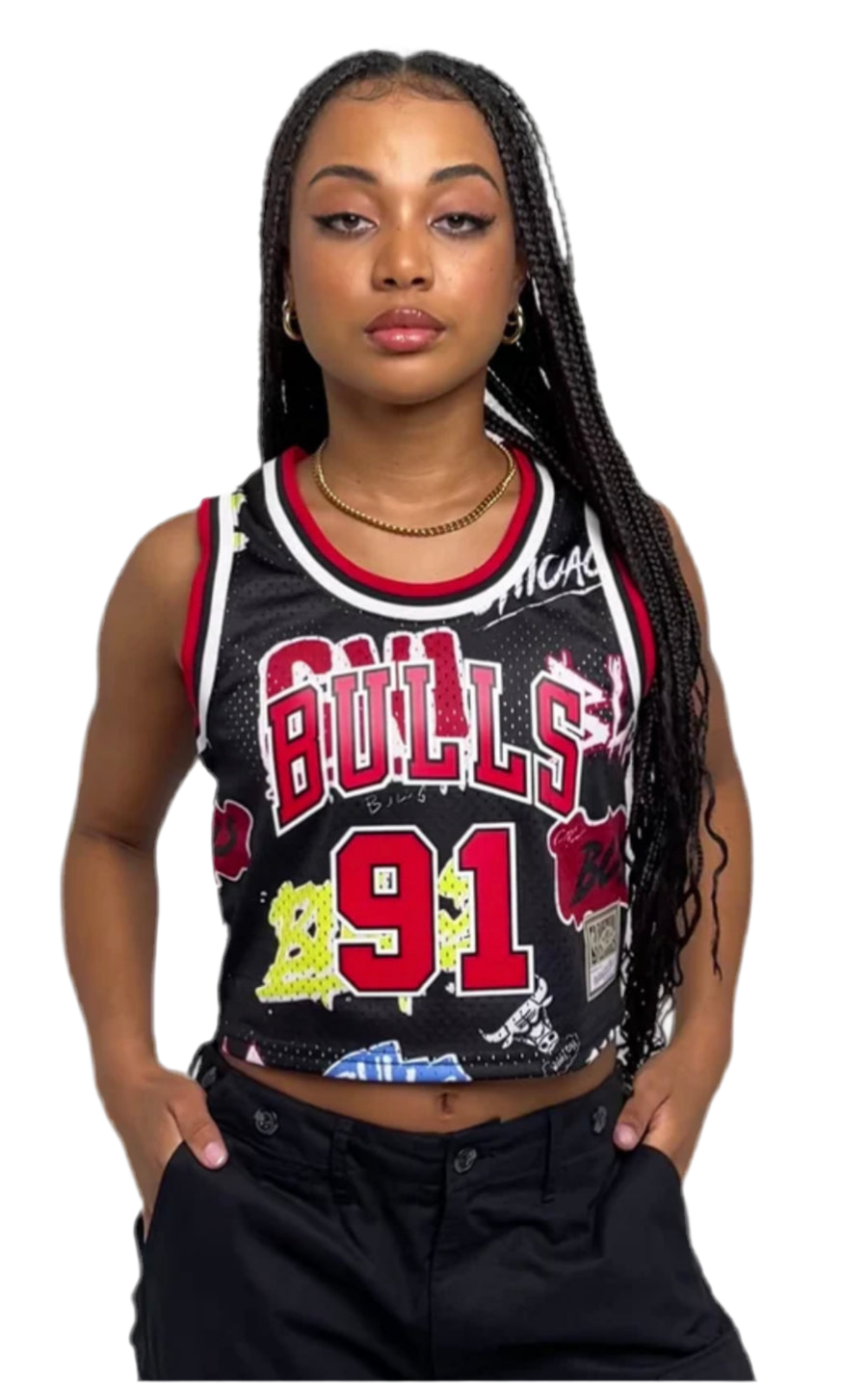 Women's Dennis Rodman Chicago Bulls Slap Sticker Crop Tank from Mitchell & Ness.