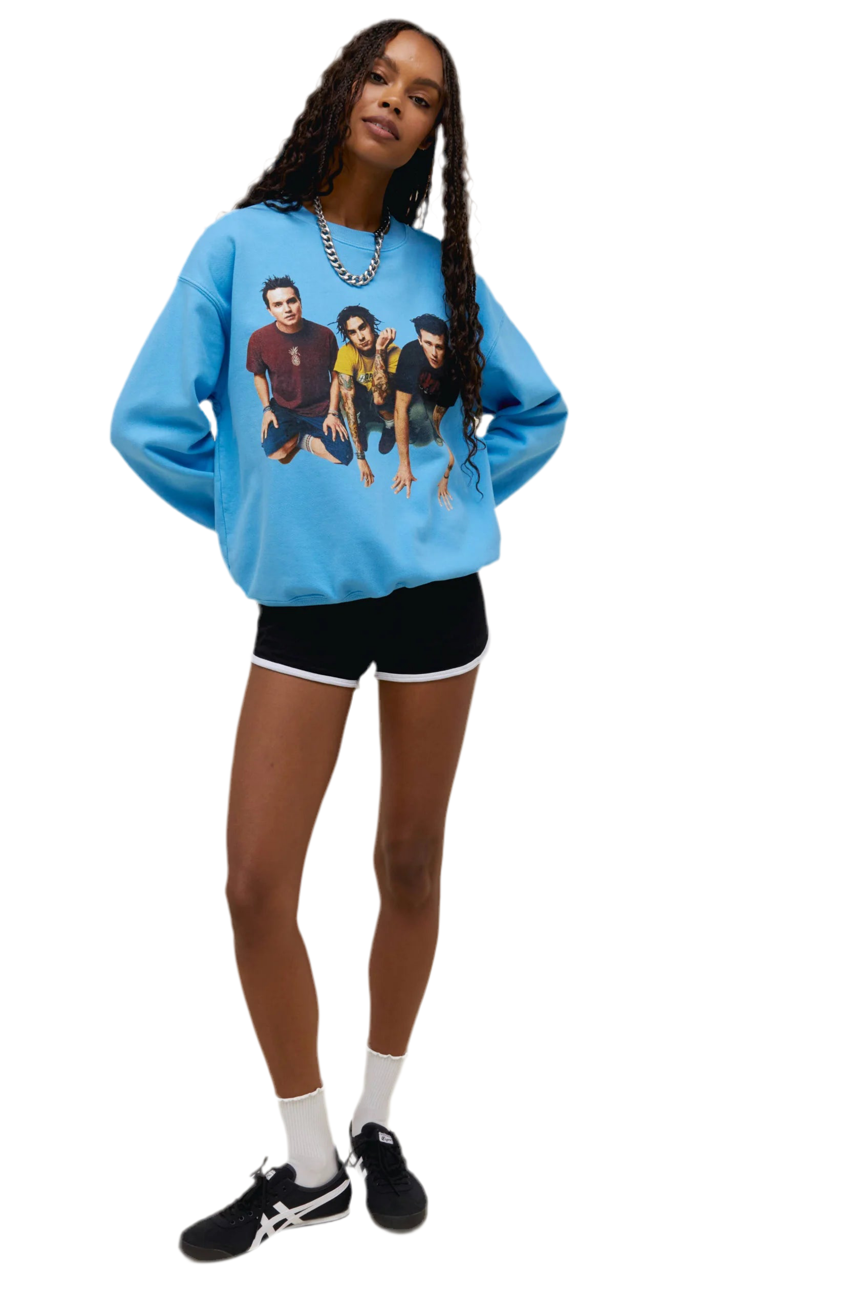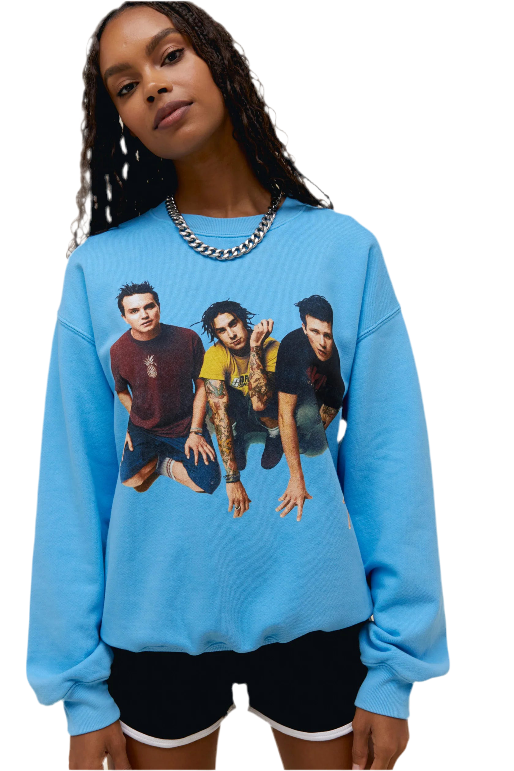 Featuring the high-octane powerhouse trio that ignited every stage they met, this oversized crew is slapped with a hand-drawn portrait of Blink-182’s members. Claim your crew as a shoutout to the unstoppable force of the early aughts who delivered unfiltered, contagious sonic experiences repeatedly. Designed with the optimal slouchy fit level to nail that borrowed from the boys' look.