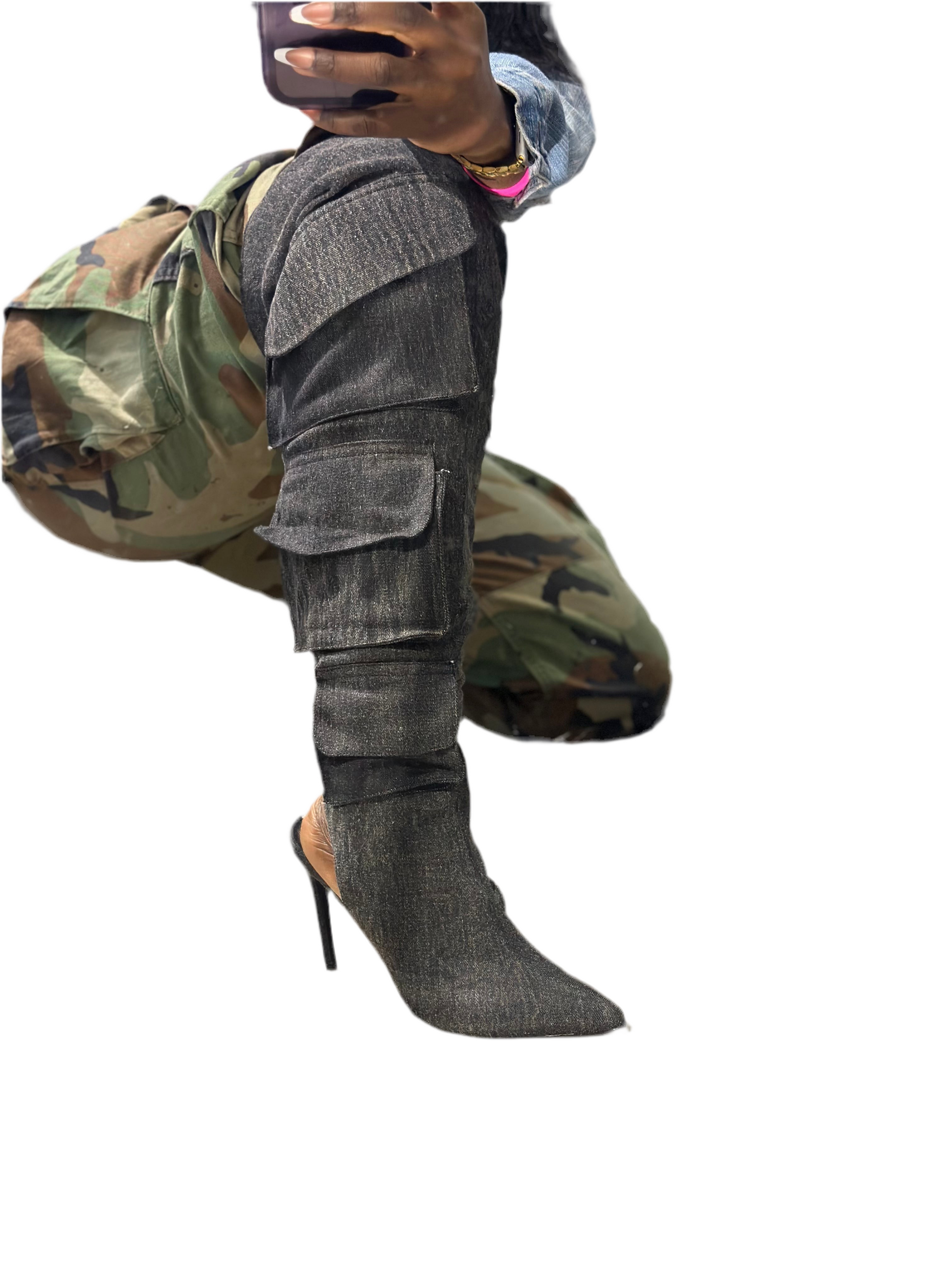 FUNHOUR DENIM THIGH HIGH BOOTS