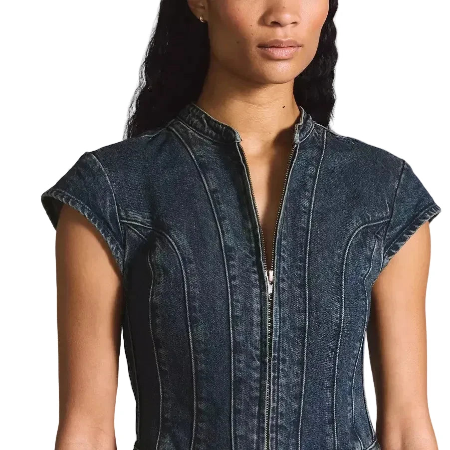 Our Moto Jumpsuit is made with a flattering slim fit, a half zip design and premium Japanese denim.